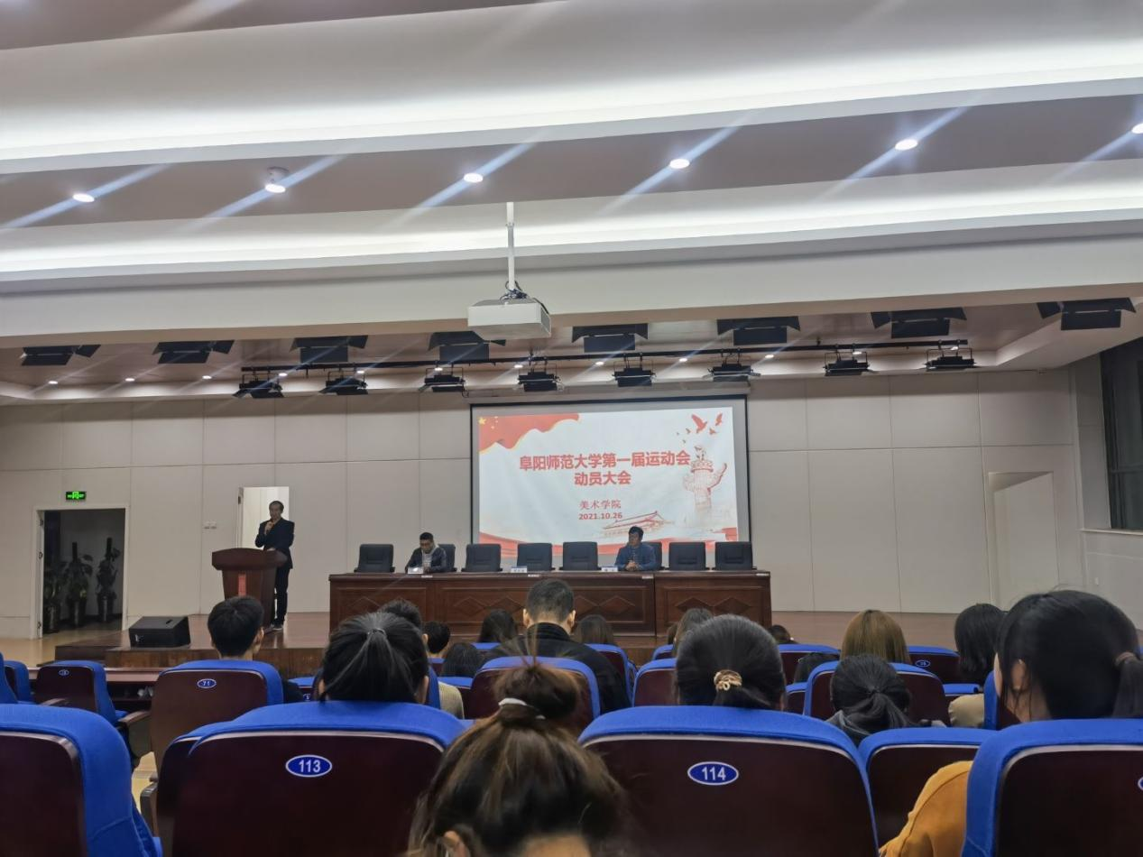 在阜阳师范大学第一届运动会到来之际,为充分调动运动员的积极性,激励运动员以更加饱满的激情迎接本届运动会,美术学院于10月26日晚在美术学院学术报告厅举行了运动会动员大会。美术学院党委书记曹礼品、副院长魏亮、党委副书记李向兵、分团委负责人程娅、全体运动员及志愿者代表参会。会议由程娅主持。