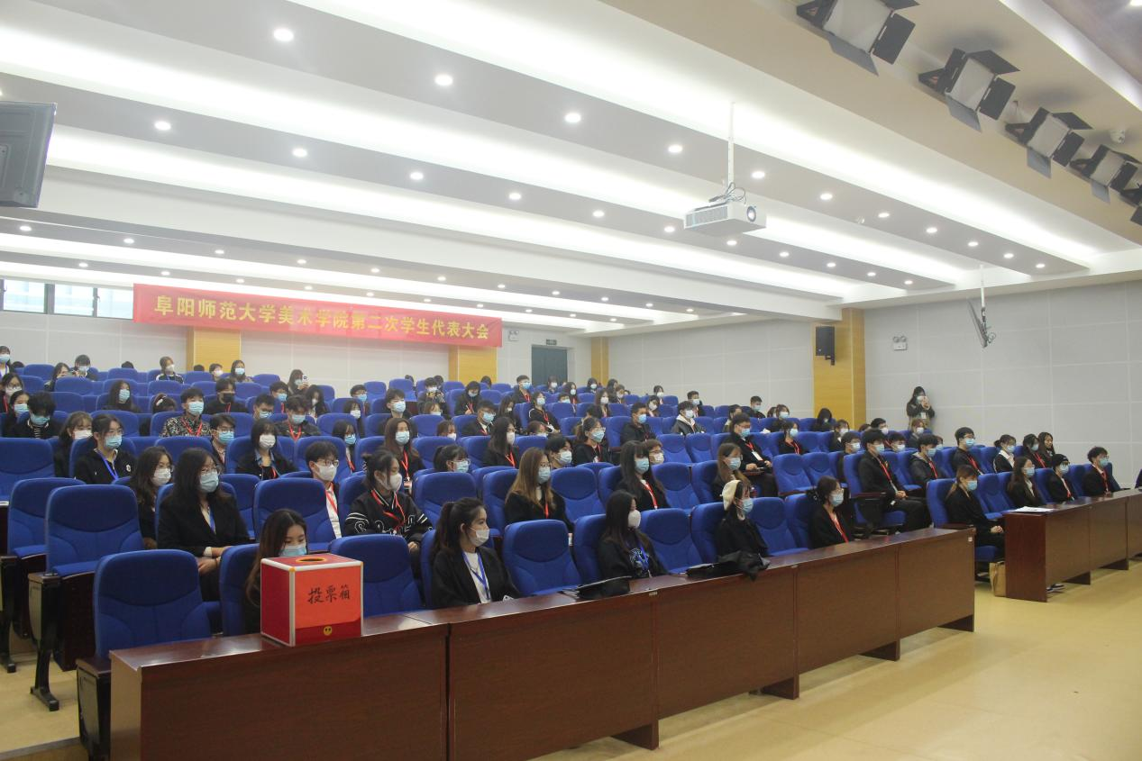 美术学院学生会执行主席鉏梦月代表学生会作上学年工作报告,总结上学年学生会总体工作情况。大会表决通过了《阜阳师范大学美术学院第二次学生代表大会正式选举办法(草案)》及监票人、计票人名单。大会选举产生了美术学院第二届学生委员会、美术学院参加阜阳师范大学第二次学生代表大会大表、美术学院学生会新一届执行主席。美术学院团委负责人程娅致闭幕词,她对本次大会的成功举行表示祝贺,对全体同学和工作人员的参与和付出表示感谢,并勉励全体同学和学生骨干不忘跟党初心,牢记青春使命,秉持“志道游艺,尽善尽美”的院训,创新工作方式,开拓学院学生工作新局面。她强调,所有代表要把本次大会的精神带到广大学生中去,广为宣传,有效落实,为创造更好的院风、学风,营造更好的文化氛围而努力。
