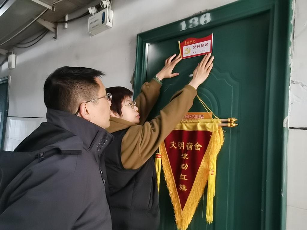 美术学院学生支部书记李辉和李阳分别带领学生干部深入走访学生宿舍,并为党员宿舍挂牌。本次挂牌共有党员宿舍36间,男生党员宿舍11间,女生党员宿舍25间。2018级视觉传达设计3班党员王馨芸表示:“为党员宿舍挂牌,是对我们学生党员的肯定和期待,同时也让我们绷紧了一根‘自觉自律’的弦,提醒我们在日常生活中时刻以党员标准严格要求自己,以身作则,欢迎更多同学对党员宿舍进行监督。” 2019级美术学1班张佳成同学说:“党员宿舍挂牌活动让我觉得‘党员在身边’,今后如果在学习生活上遇到问题就可以随时找党员同学帮忙,有这种榜样力量做引领,相信在思想上、行为上都会积极向党组织靠拢,希望自己也能早日加入党组织。”