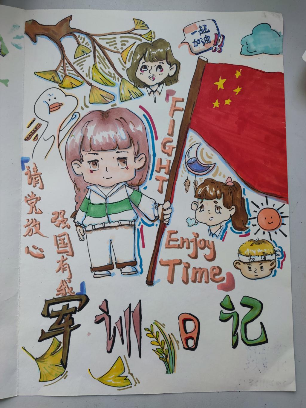以“请党放心,强国有我”为主题的军训印象日记是美术学院“三全育人”的重要举措。该活动使美院学子结合专业特点,用自己的方式记录了大学的点滴生活,用心体验军训中的收获。同时,该活动进一步加强了校园文化建设,以具体实践加强了对美院学子的党史学习教育。新生们经历军训的洗礼成长为青年该有的模样,褪去了些许稚嫩,收获了坚韧担当。如今,以良好的风貌投入到了正常的学习生活中。