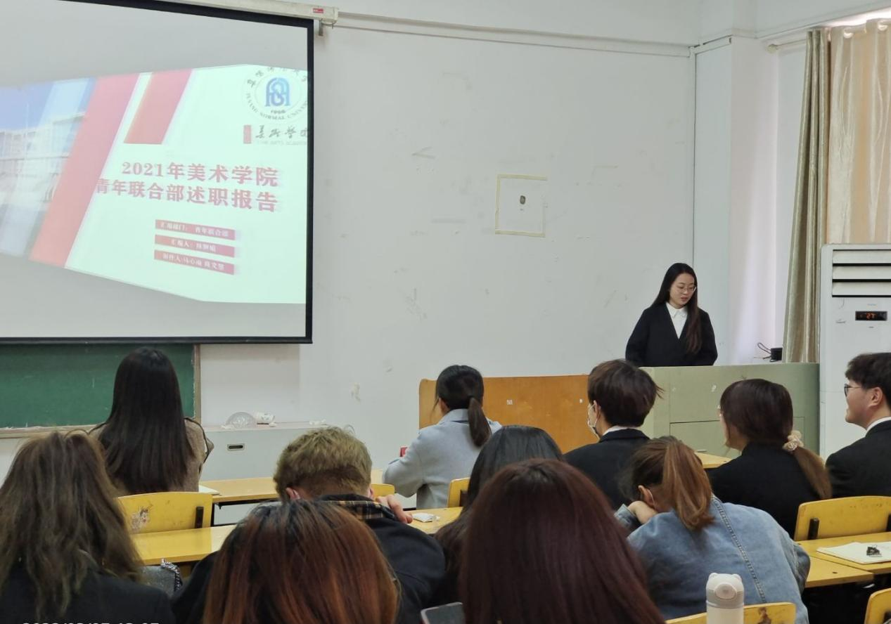 美术学院分团委学生会主席团首先进行述职,他们从整体工作分配,团队配合,主要业绩及未来工作展望等四个部分依次进行了述职。接着部门负责人按照顺序依次进行述职,对所属部门进行阶段性总结,回顾了各项工作情况和改革成效,对其在工作中的收获与不足进行了总结和反思,并在此基础上展望了新学期的工作目标与计划。