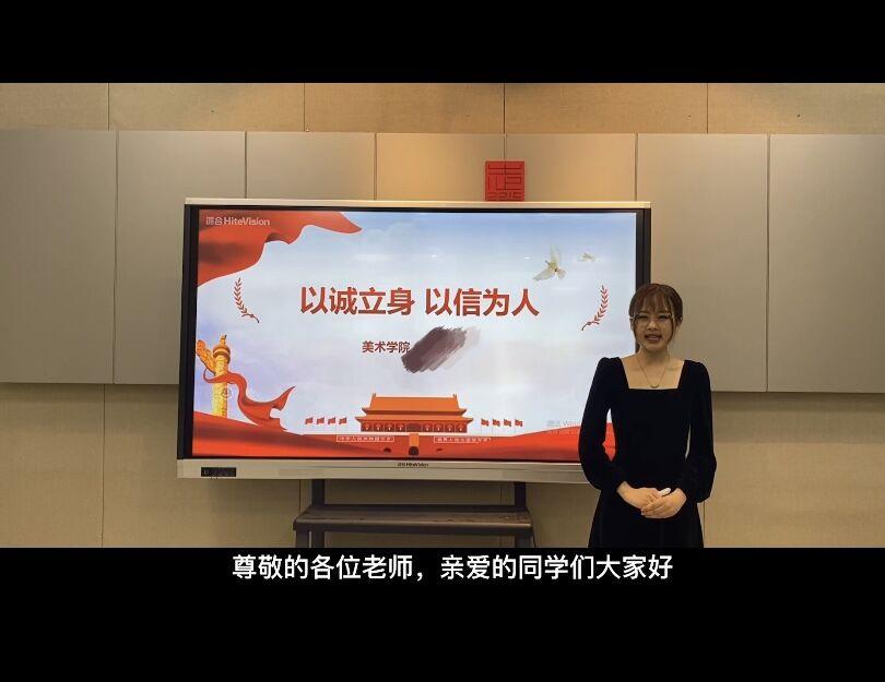 主题演讲,传递心声。5月下旬美术学院开展了“学生资助诚信教育”优秀微视频大赛。参赛同学紧扣“至诚则成,立信于行”的主题,以中华优秀传统文化及当今社会中涌现的诚信人物和故事为素材,结合自身经历,录制宣讲短视频。