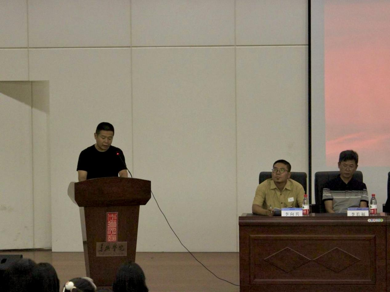 美术学院研究生负责人庞宗超老师作为教师代表发言。庞宗超指出,全体新生在校期间应提前做好规划,提升专业技能,开拓视野,既要专注于专业性教学活动,又要积极参加各项校园活动,全面提升自我能力。