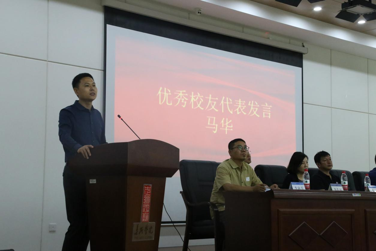 2000级优秀校友马华作为校友代表发言。马华与同学们分享了自己的成长历程,勉励同学们珍惜校园生活,刻苦学习,不断通过实践积累经验,持之以恒地追求自己的梦想。