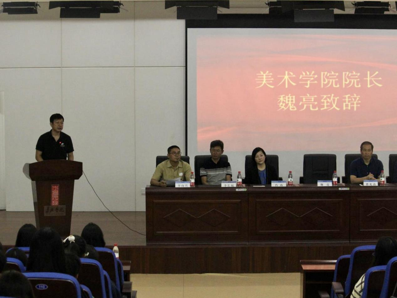魏亮对新生表达了热烈的欢迎,向2023级新同学介绍了美术学院的发展历程,在安徽省的影响力,专业设置情况,以及美术学院师生取得的丰硕的成果,指出美术学院随着阜阳师范大学的发展也取得了长足的进步,并针对美术专业的特点鼓励同学们树立长远的规划,确立人生的目标,在大学里努力学习,夯实基础,为踏入社会做好充足的准备。