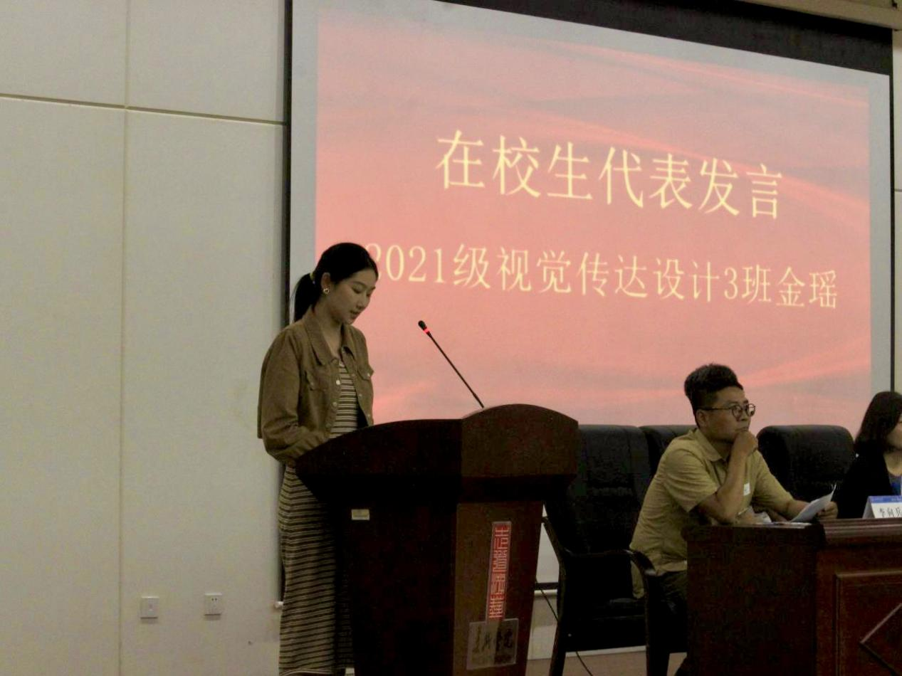 2021级视觉传达设计3班金瑶同学作为在校生代表发言,2023级研究生郑冰倩与2023级视觉传达设计3班李宣然同学作为新生代表发言。