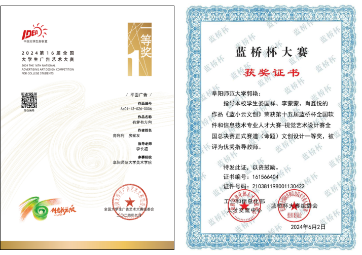 近四年,学院学生在全国A类赛事中展现强劲实力,累计斩获国家级一、二、三等奖198项、省级奖项838项,获奖成绩连续两年位居全国前列,分别位列第四名与第二名,且连续五年获评学校学科竞赛先进单位。在艺术展演与专项赛事中亦成果丰硕:第六届全国大学生艺术展演中摘得国家级美术创作类一等奖1项、省级一等奖2项,安徽省第七届大学生艺术展演再获一等奖4项;在“安徽省大学生绘画作品大赛”中,学生荣获一等奖20余项、二三等奖及优秀奖100余项,获奖规模与层次在省内高校中稳居前列,充分彰显了学院实践教学与创新能力培养的显著成效。