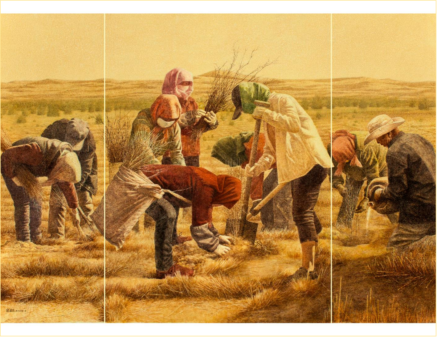 庞宗超《大漠治沙人系列之二》第14届全国美展水彩粉画展进京作品、中国美术奖获奖推荐作品,中国美术馆收藏
