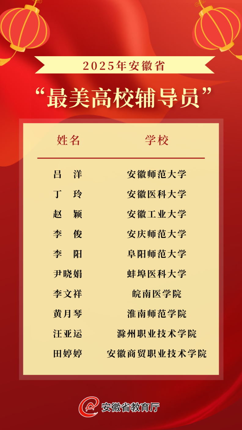 近日,2025年安徽省“最美高校辅导员”与“最美大学生”评选结果正式揭晓。本次活动由中共安徽省委宣传部、省委教育工委共同组织,经过高校推荐、专家评审、集中评议等环节,最终选出“最美高校辅导员”“最美大学生”各10名。美术学院专职辅导员李阳名列其中,荣获安徽省“最美高校辅导员”称号,展现出学院思政育人工作的扎实成效与辅导员的卓越风采。