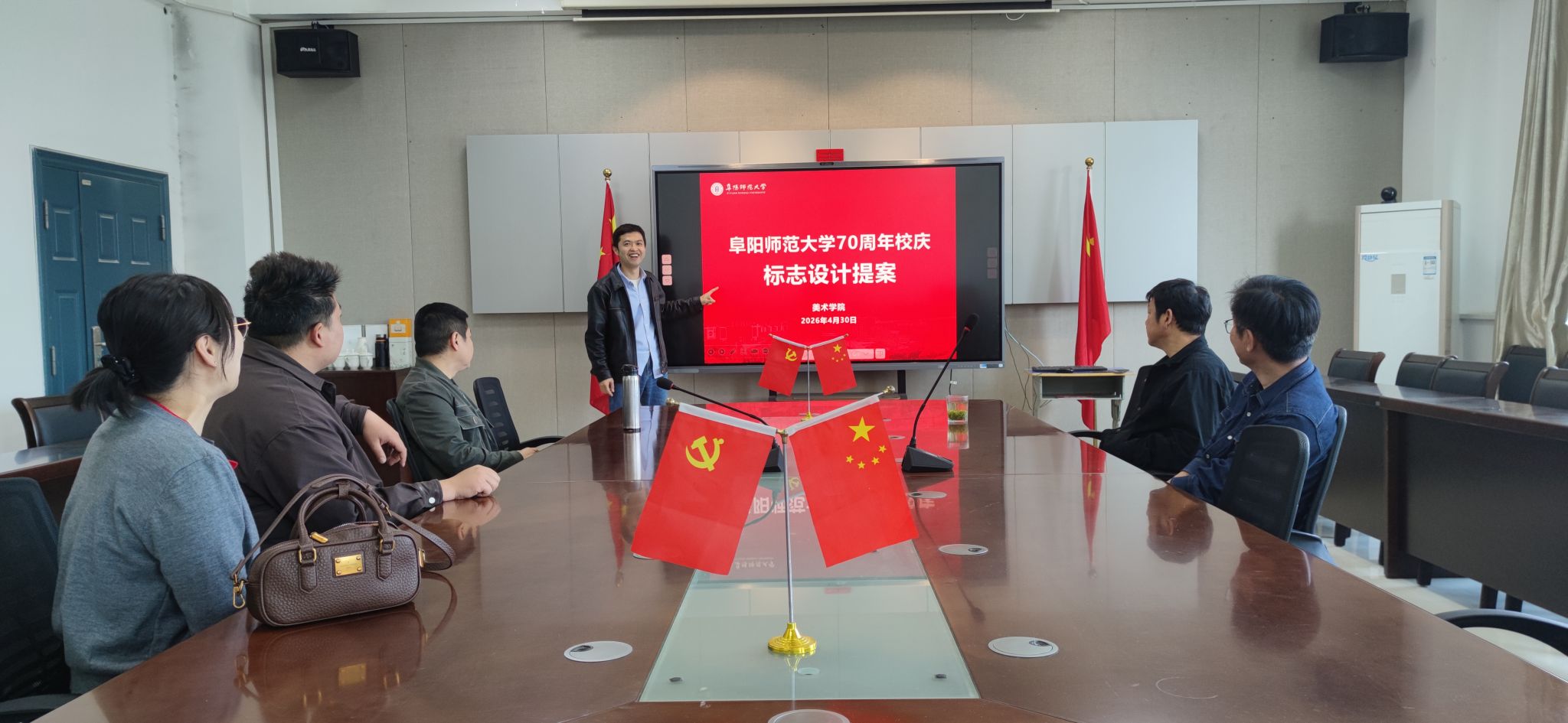 为推进阜阳师范大学70周年校庆视觉设计工作,4月30日上午,美术学院在324会议室召开校庆标志设计提案会。学院党委副书记、院长魏亮教授、副院长庞宗超教授、视觉传达设计教研室主任李长福、相关骨干教师及设计团队参会,会议由魏亮主持。
