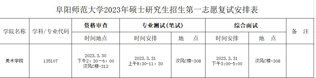 1.阜阳师范大学2023年硕士研究生招生第一志愿复试安排表