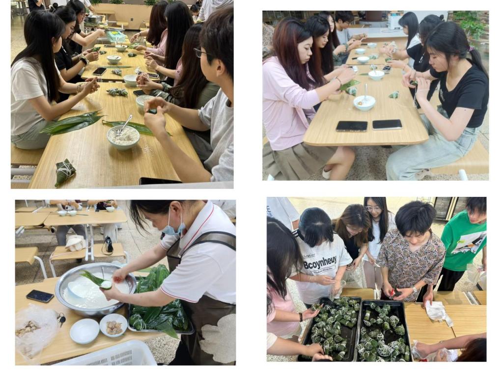 “粽叶飘香话端午”主题团日活动。6月2日下午,在西湖校区一区食堂,美术学院开展了“粽叶飘香话端午”主题团日活动。活动伊始,美术学院青年讲师团成员金瑶同学带领在场同学回顾了端午节的起源,并以知识抢答的形式重温端午节划龙舟、挂艾草、洗草药水、拜神祭祖、食粽子、拴五色丝线、佩香囊等相关习俗。随后,在食堂阿姨的指导下,在场同学共同包粽子。粽叶在手中翻飞,绳线穿梭其中,一个个形态各异的粽子渐渐成形。同学们尽情享受着包粽子带来的乐趣,整个活动过程充满了欢声笑语。