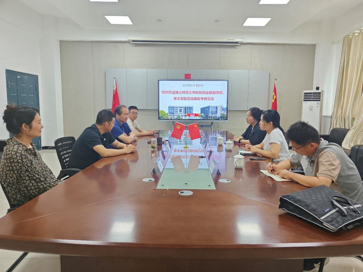 6月6日上午,淮北师范大学创新创业学院院长张美丽、创业研究院副院长方振国、美术学院副院长岳翔一行到美术学院调研大广赛等学科竞赛情况,美术学院党政领导班子、环境设计教研室主任、视觉传达设计教研室主任等参加座谈。