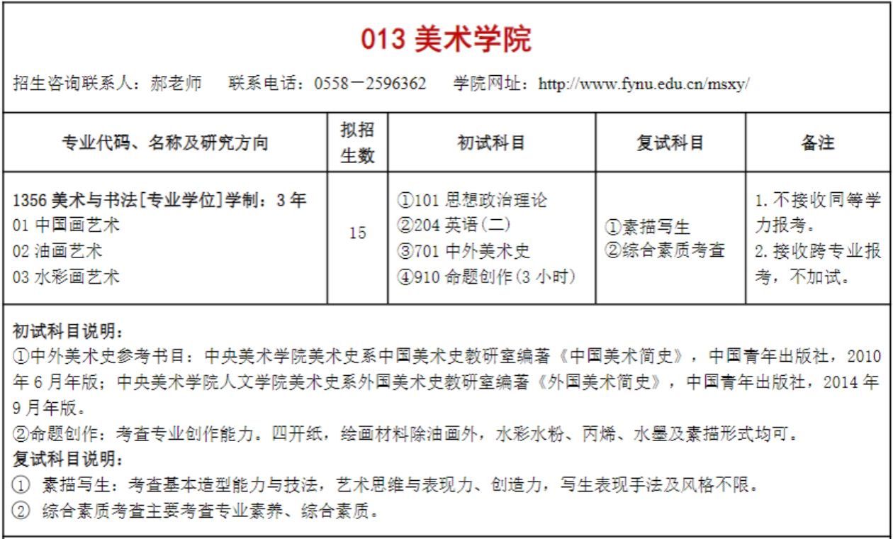 阜阳师范大学美术学院2025年全日制硕士研究生招生专业目录