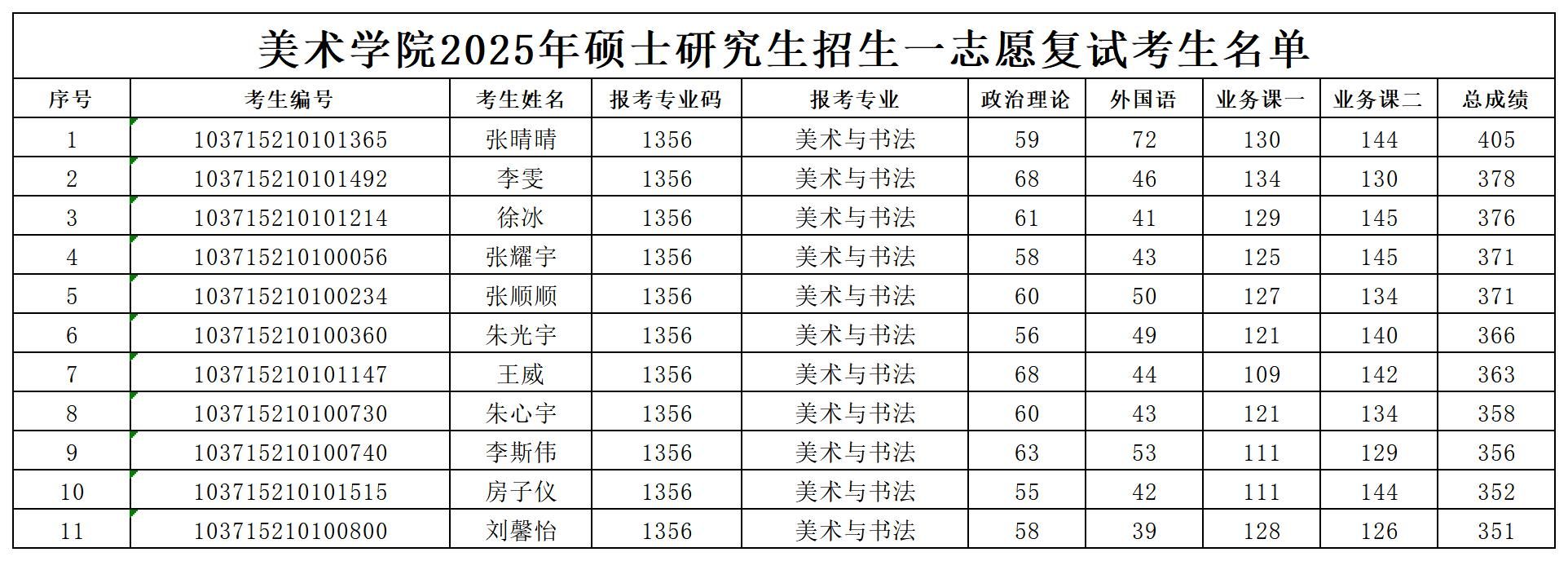 美术学院2025年硕士研究生招生一志愿复试考生名单