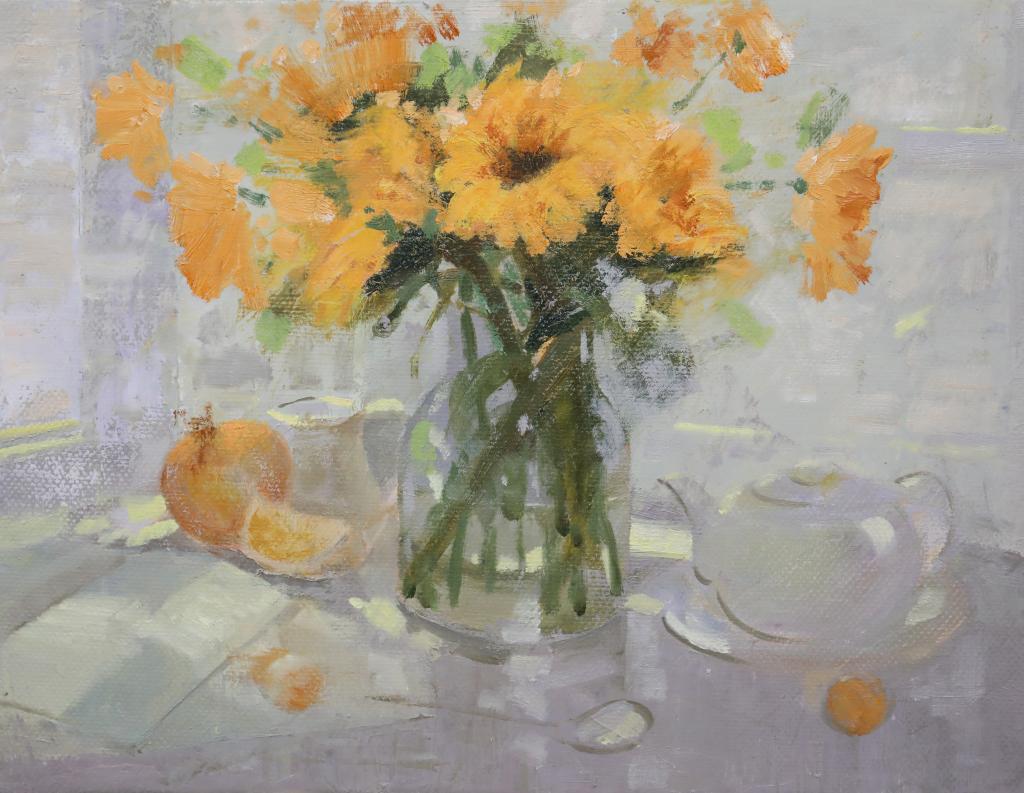 本次安徽省第二届小幅油画作品展面向全国征稿,共收到2600件送展作品,经过初评、复评,最终300余幅作品入选。我院郑冰倩同学的入选作品《弥漫窗前》,用写意的笔触描绘了一组窗前静物,画面轻松而富有张力。