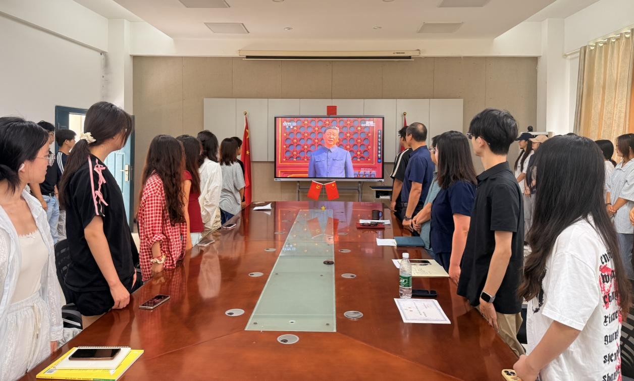 9月3日上午,纪念中国人民抗日战争暨世界反法西斯战争胜利80周年大会在北京天安门广场隆重举行。为深切缅怀革命先烈,弘扬伟大抗战精神,激发广大师生的爱国热情和民族使命感,美术学院组织班子成员、支部书记、团委负责人、学生党团员等观看了大会现场直播,共同见证这一庄严而神圣的历史时刻。