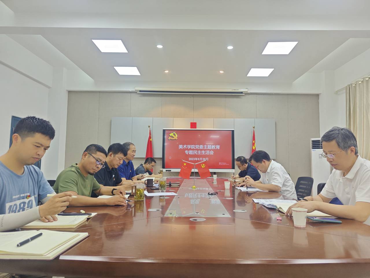 按照党中央统一部署和省委工作要求,8月26日上午,美术学院党委在汉风C楼324会议室召开学习贯彻习近平新时代中国特色社会主义思想主题教育专题民主生活会。校党委副书记、校长方廷勇到会指导并作出点评,会议由美术学院党委书记曹礼品主持。美术学院班子成员参加会议,校主题教育指导小组成员李兵帅、李奥运,非处级党员干部、党委委员列席会议。