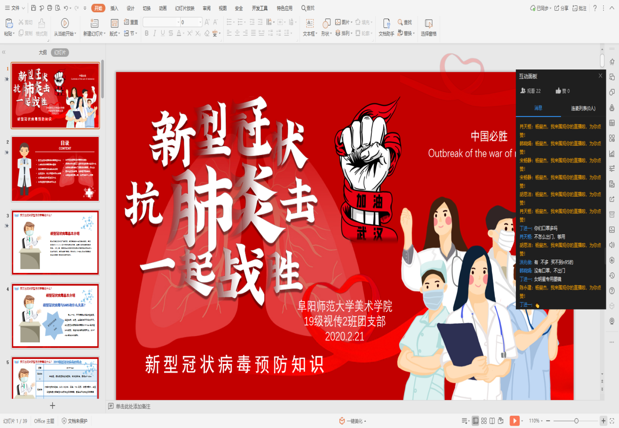 在防疫攻坚的关键时期,在学院党委的统一安排下,美术学院分团委本着带头贯彻党中央的要求,充分展现青年生力军和突击队作为,挺身而出、冲锋在前,以防疫工作为主题,在全院各级团组织中集中开展“抗击疫情,你我同行”主题团日活动。