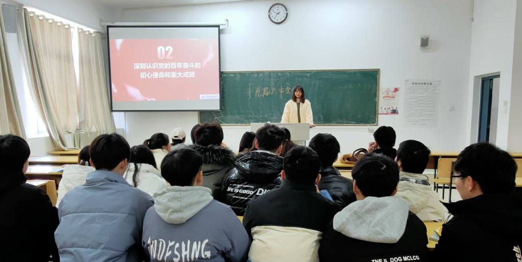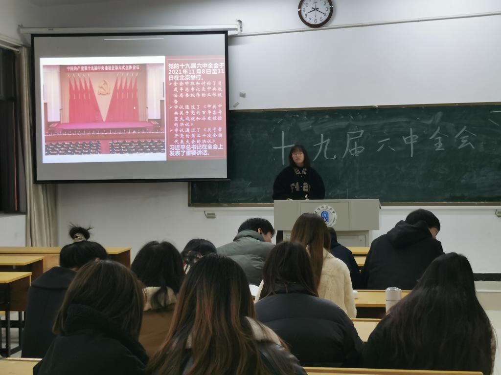 12月8日在文科楼608教室,学院分团委负责人程娅为21级美术学1、2、3、4班团支部展开了宣讲。程娅首先介绍了党的十九届六中全会召开的历史背景、重大意义和重大成果;接着从“深刻领会决议的重大意义”、“中国共产党百年奋斗的重大成就”、“中国共产党百年奋斗的历史意义”、“中国共产党百年奋斗的历史经验”、“新时代的中国共产党”、“全面贯彻落实十九届六中全会精神”六个部分进行详细展开,深刻阐述了党的十九届六中全会的重大意义、科学内涵和重要指导作用。