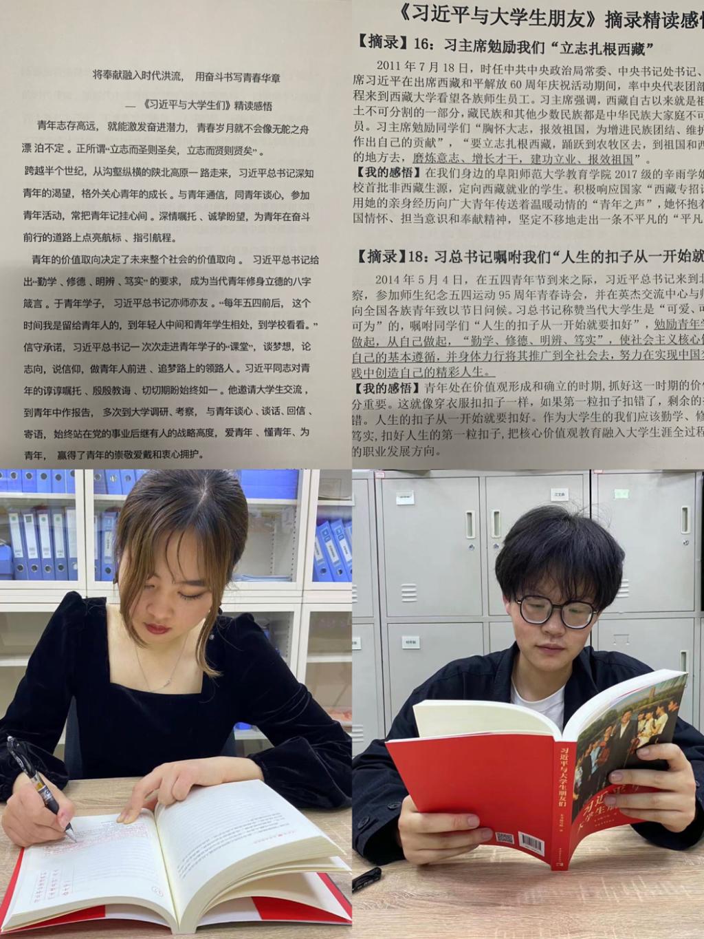 为迎接中国共产主义青年团成立100周年,推动美术学院青年学生多读书、读好书、认真读书,深入学习领会习近平总书记对青年健康成长的一系列重要要求,过好学校生活、走好青春路,美术学院分团委组织团员青年开展了“牢记领袖教导 分享青春感悟”—《习近平与大学生朋友们》精读大赛。
