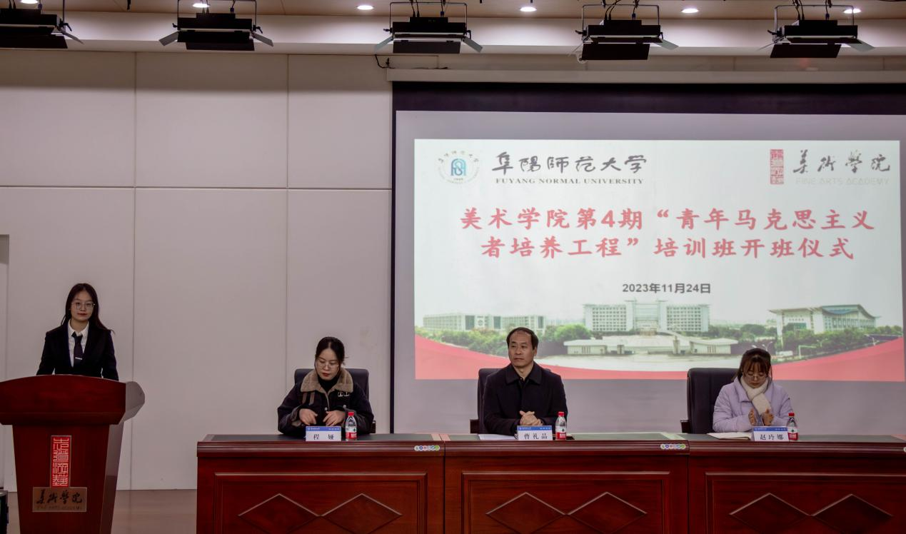 为深入学习贯彻党的二十大精神,以及习近平总书记关于青年工作的重要思想,扎实推进团中央学校部倡导的青年马克思主义培养工程,着力培养一批坚定的青年马克思主义信仰者、学习者、传播者,加强学院共青团基层组织建设,发挥学院各级团学骨干在学生中的积极作用,拓宽学院育人途径,美术学院于11月24日在美术学院学术报告厅举办了第4期“青马工程”培训班开班仪式。美术学院党委书记曹礼品、学院团委副书记程娅、辅导员赵玲娜及全体青马班学员参加了开班仪式。