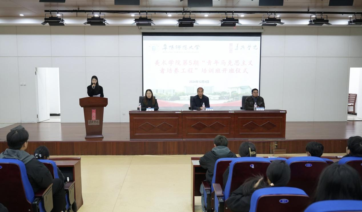 为深入学习贯彻党的二十大、二十届三中全会精神,以及习近平总书记关于青年工作的重要思想,扎实推进团中央学校部倡导的青年马克思主义培养工程,着力培养一批坚定的青年马克思主义信仰者、学习者、传播者,加强学院共青团基层组织建设,发挥学院各级团学骨干在学生中的积极作用,拓宽学院育人途径,美术学院于12月4日在美术学院学术报告厅举办了第5期“青马工程”培训班开班仪式。美术学院党委书记曹礼品、学院党委副书记李向兵、学院团委副书记程娅及全体青马班学员参加了开班仪式。