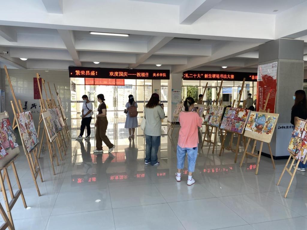 在举国上下喜迎中国共产党第二十次全国代表大会即将胜利召开,庆祝中华人民共和国成立73周年之际,为进一步激发同学们的爱国热情,营造节日氛围,丰富学生在校生活,展现学院温情,体现人文关怀,美术学院于10月1日-2日举办了“喜迎国庆节 献礼二十大”系列学生活动。