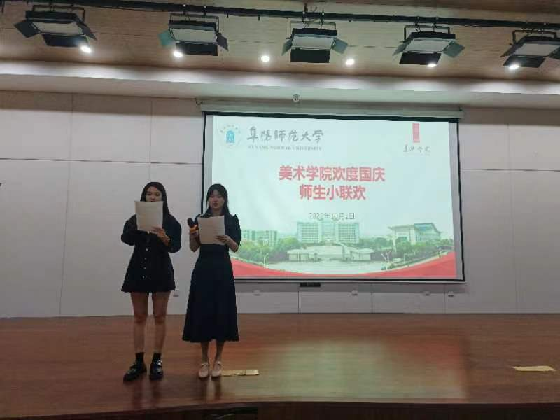 欢度国庆小联欢。锦绣中国,盛世华诞;星星相映,家国礼赞,为使学生感受节日氛围,加强新老生交流,美术学院于10月1日晚在汉风楼C楼美术学院学术报告厅举办了“欢度国庆小联欢”活动,各年级辅导员与学生代表参加了活动。师生们用歌声抒发情感,用舞蹈传递热爱,表达对祖国的礼赞。活动现场氛围活跃,展示了学院全体师生斗志昂扬、奋发有为、蓬勃向上的良好精神风貌。
