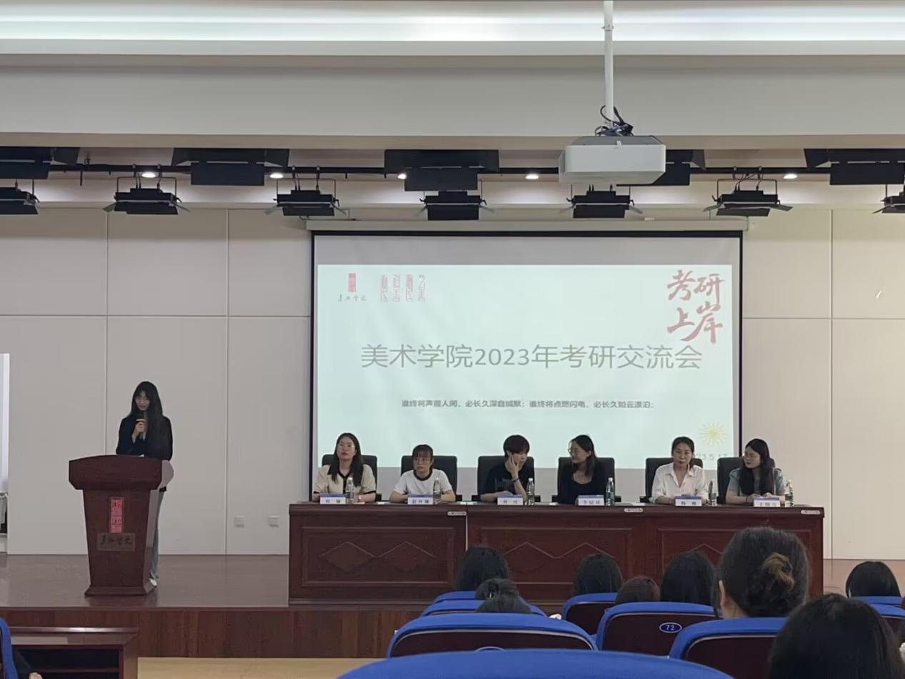 为深入推进学习贯彻习近平新时代中国特色社会主义思想主题教育,认真贯彻党的二十大精神,将主题教育成效转化为推进学生就业工作的生动实践,进一步加强学生对考研的认知和了解,搭建学院考研学习交流平台,美术学院于5月18日在美术学院学术报告厅举办了“我为师生办实事”之2023年考研经验交流会。美术学院团委副书记程娅、2021级辅导员赵玲娜、2020级与2021级100位同学参加了考研交流会。2019级绘画2班刘佳、李婧瑶,2019级环境设计1班杨帅,2019级环境设计2班王明雪四位同学作了经验分享。