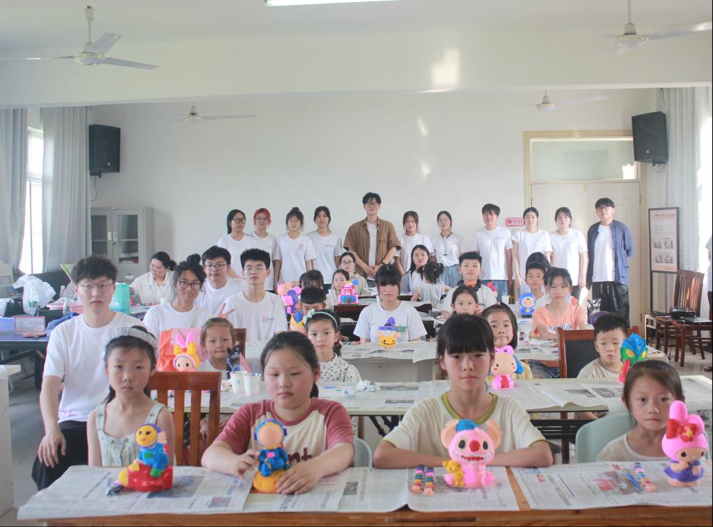 为深入学习宣传贯彻习近平新时代中国特色社会主义思想,全面贯彻落实党的二十大精神,引导和帮助广大青年学生上好与现实相结合的“大思政课”,立志做有理想、敢担当、能吃苦、肯奋斗的新时代好青年,近日,美术学院组织大学生志愿者暑期“三下乡”社会实践团队——“绘梦青春”美育实践团前往阜南县田集镇开展暑期志愿服务。该团队是美术学院团委品牌项目“美育课堂”的校外延伸,主要以美术学院专业为依托,以社区对接服务项目为平台,以提升学生实践能力、服务地方留守儿童美育教育为目的,为阜南县田集镇留守儿童开展暑期美育教育及系列安全教育。