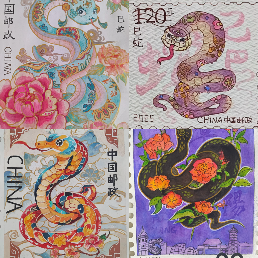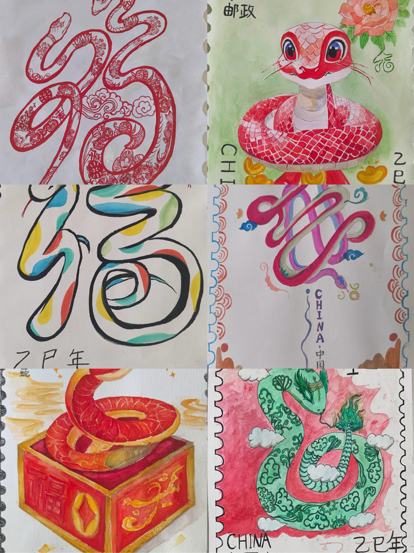为深入学习贯彻党的二十大精神,培育和践行社会主义核心价值观,弘扬中华传统生肖文化,迎接乙巳蛇年的到来,促进广大学生思想道德建设,推动活动育人、文化育人,培育打造新时代校园文化品牌,近期,美术学院举办了“盛世华章 灵蛇献瑞”生肖邮票设计大赛。