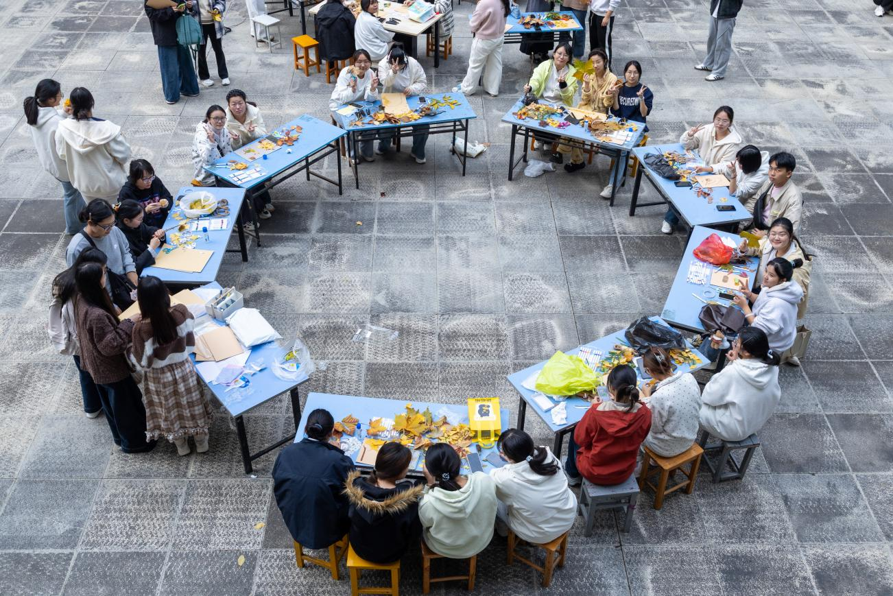 秋叶作媒,艺术为桥。11月16日,美术学院心理委员联合会携手辅导员名师工作室——“愈见”艺术疗愈工作室,在汉风C楼二楼平台举办“秋天最棒的礼物”树叶装饰画活动。全校66组选手以自然为料、以创意为笔,在捡拾与创作中释放压力、共鸣心灵,让秋日校园绽放出心理育人与艺术疗愈交融的别样光彩。
