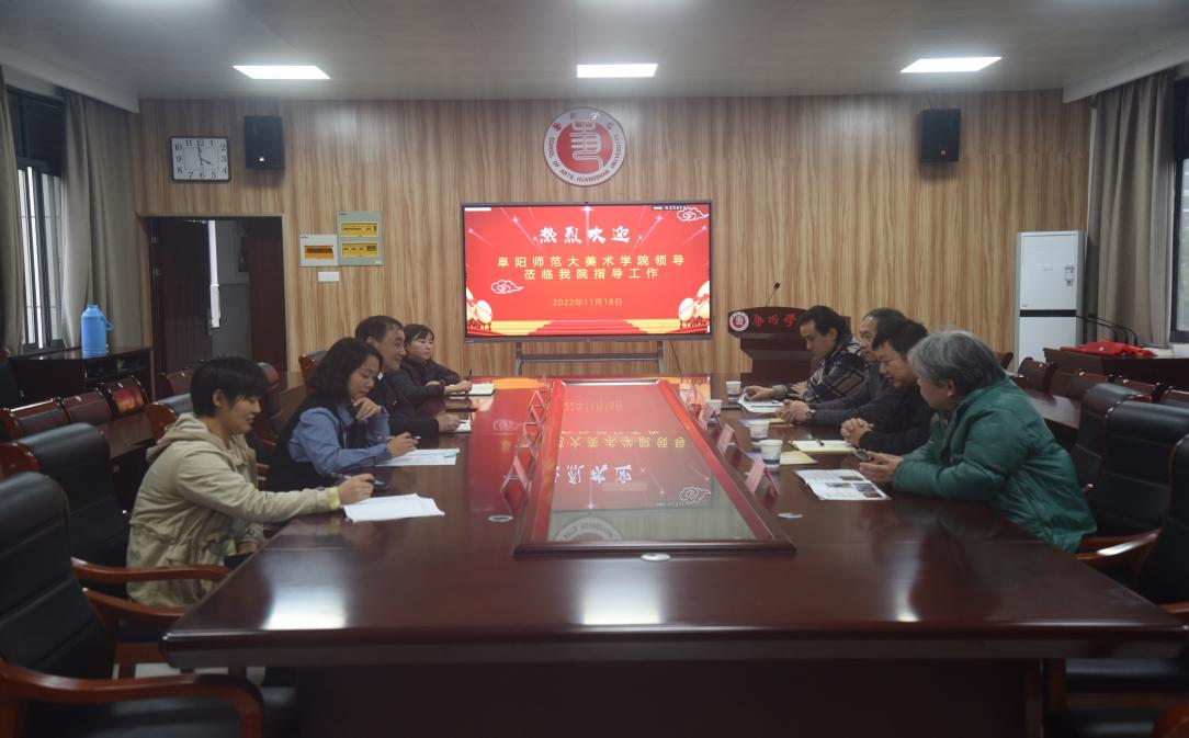 美术学院党委书记曹礼品、副院长(主持工作)魏亮同与会人员详细介绍了阜阳师范大学美术学院在办学规模、学院特色与成果、人才队伍培养和学科专业建设等方面的基本情况。双方在座谈会上就一流专业建设、人才培养方案、科学研究、社会服务和人才培养传承创新等多方面进行了深入交流。
