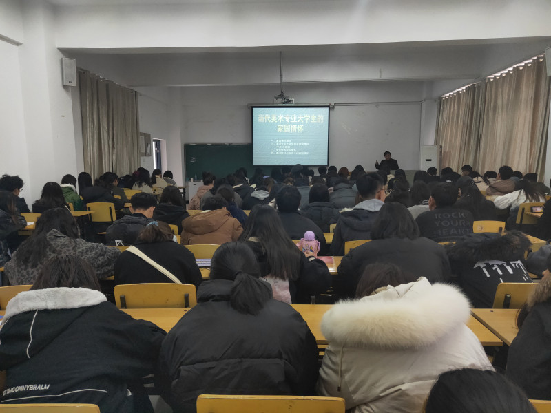 12月6日下午,美术学院关工委、团总支在汉风楼C 304室举办“与信仰对话”主题报告会,原美术学院院长江河教授作《当代美术专业大学生的家国情怀》主题报告。我院各年级学生代表共145人参加了本次报告会。 家国情...