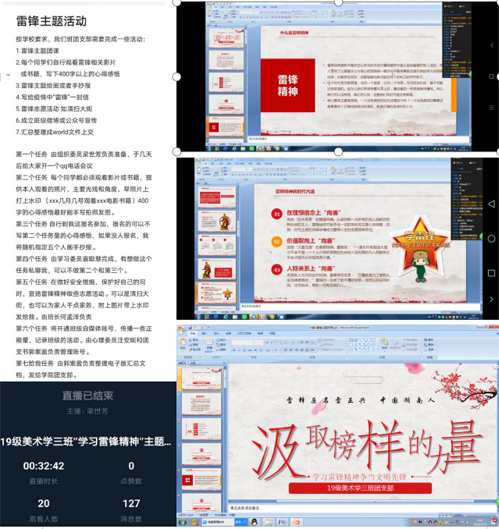 普通文章 [共青团工作][图文] 【疫情防控】“弘扬雷锋精神 争做时代榜样”美术学院开展“学雷锋志愿服务月”线上... 2020/03/28