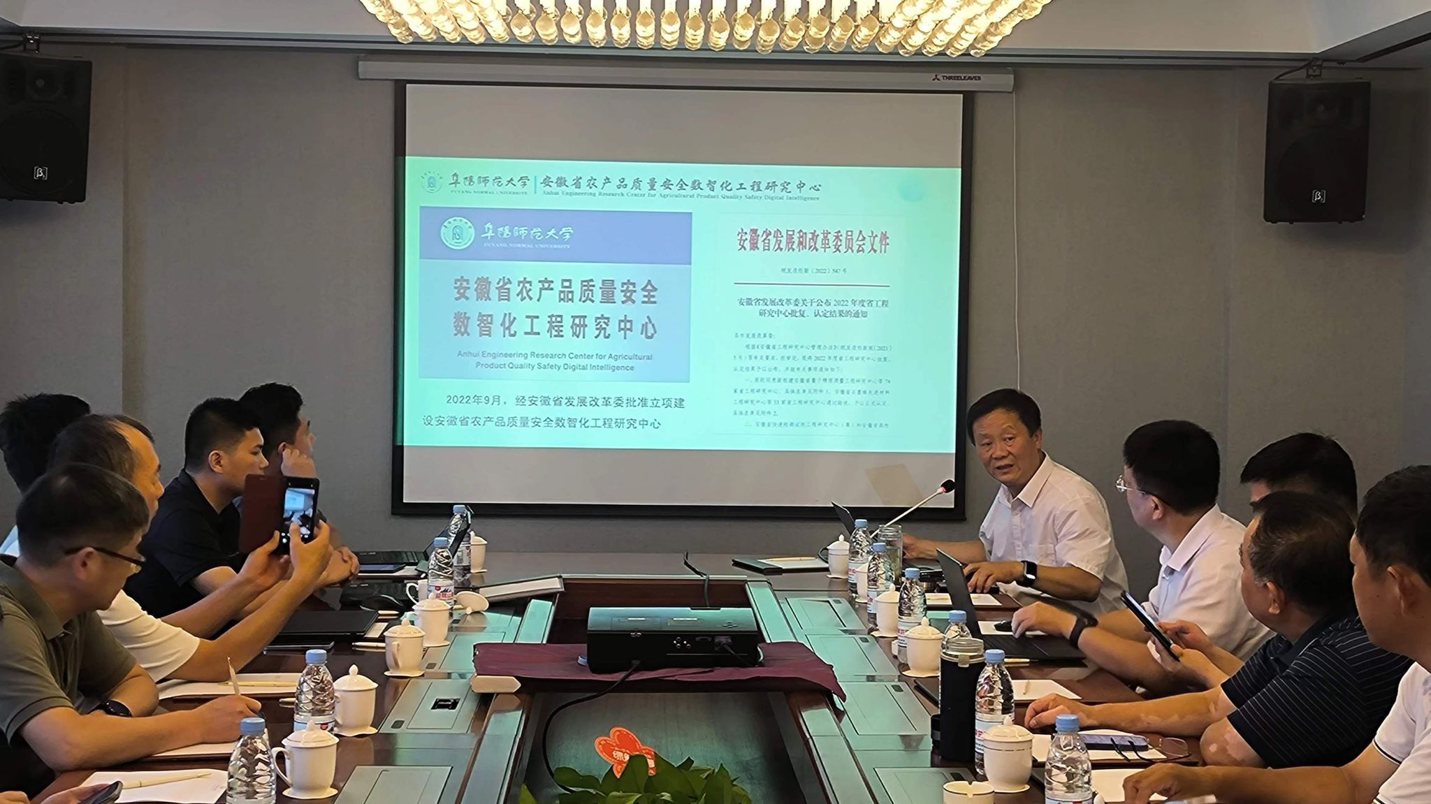 为进一步推进安徽省农产品质量安全数智化工程研究中心在农业领域的区块链技术应用创新,2024年7月12日,安徽省农产品质量安全数智化工程研究中心区块链农业与应用创新学术研讨会在阜阳广润国际大酒店会议室举办,工程研究中心主任陈曙光、阜阳市智慧城市研究院安徽中科晶格技术有限公司副总经理元沐南、行业应用研发总监姜文武、行业运营总监史贤康及行业相关专家参加本次会议。