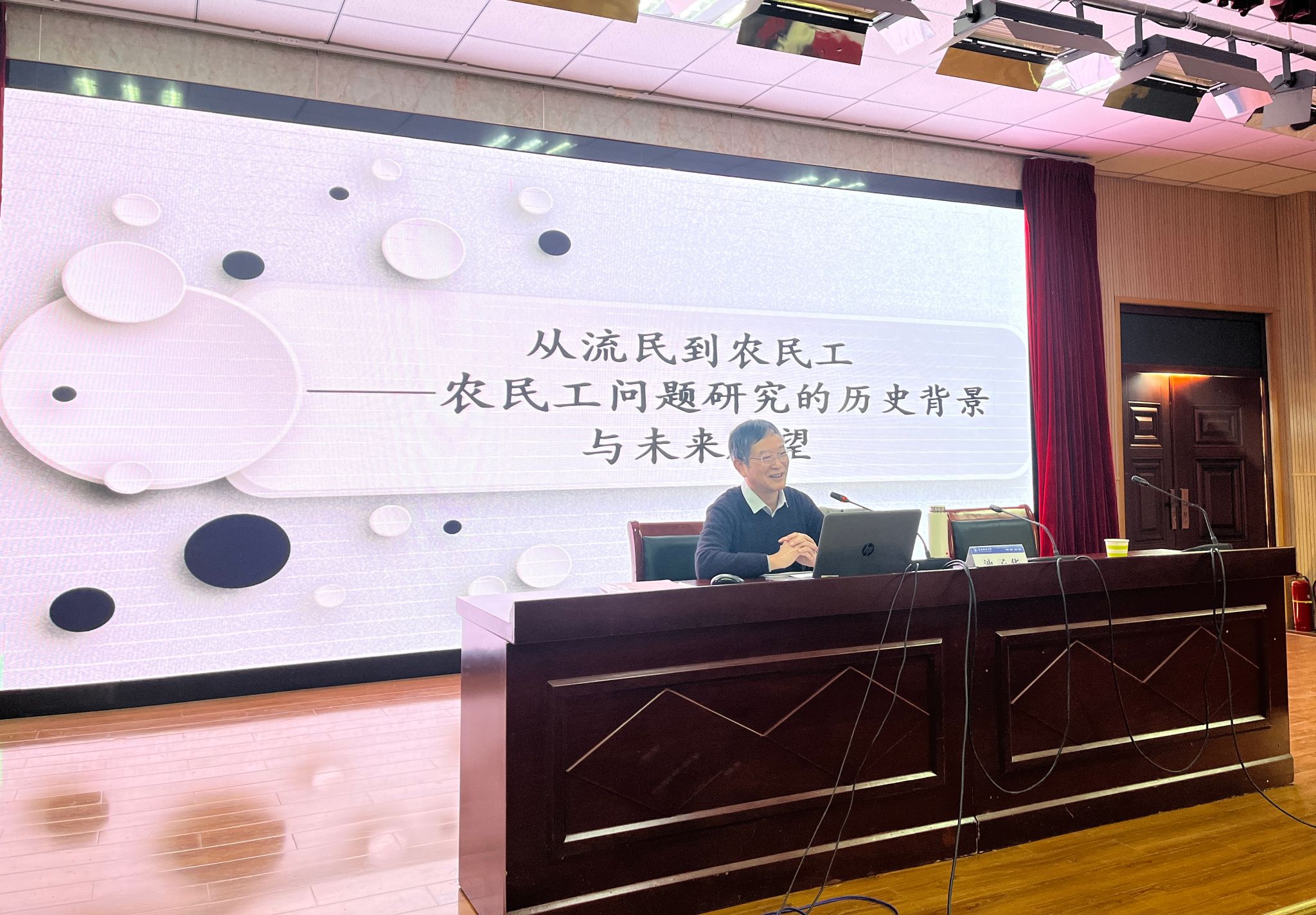 12月1日上午,苏州大学博士生导师池子华教授应邀来农民工研究中心做题为《从流民到农民工——农民工问题研究的历史背景与未来展望》的专题讲座。讲座由阜阳师范大学副校长张庆旭教授主持,农民工研究中心主任韦向阳教授作讲座总结。图书馆、财务处、农民工研究中心研究员、商学院领导、研究生与本科生到场聆听。