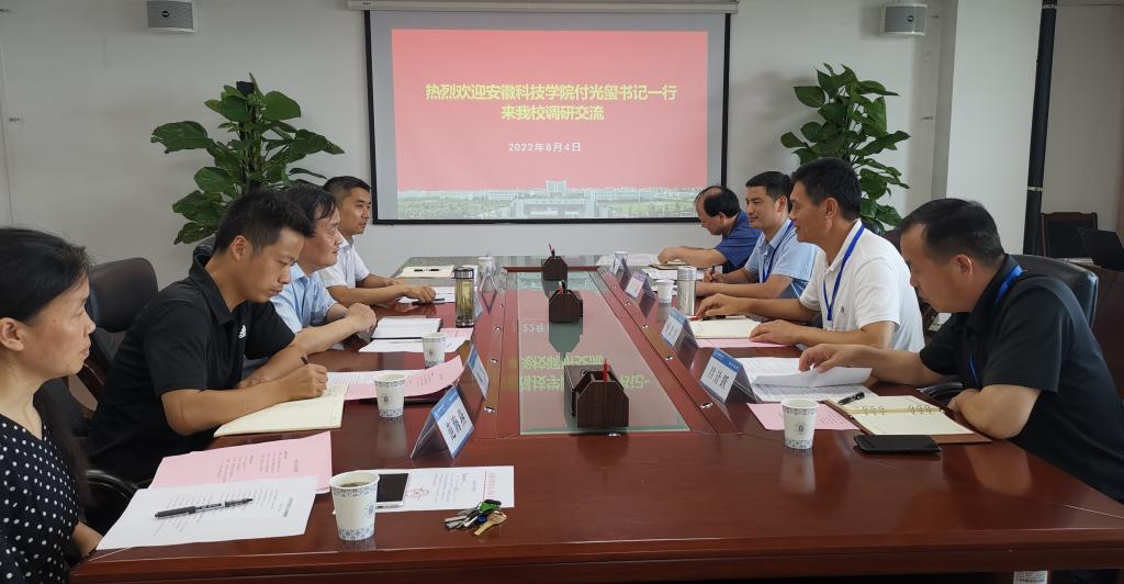 8月4日上午,安徽科技学院食品工程学院党委书记付光玺一行来我校开展安徽省教科文卫体工会年度重点课题“安徽省教育系统非在编职工队伍状况和权益保障情况调查”调研工作。人事处处长卢少求主持召开调研交流会,人事处副处长刘小鹏、党委教师工作部副部长陈勇以及职能科室负责人参加了交流会。
