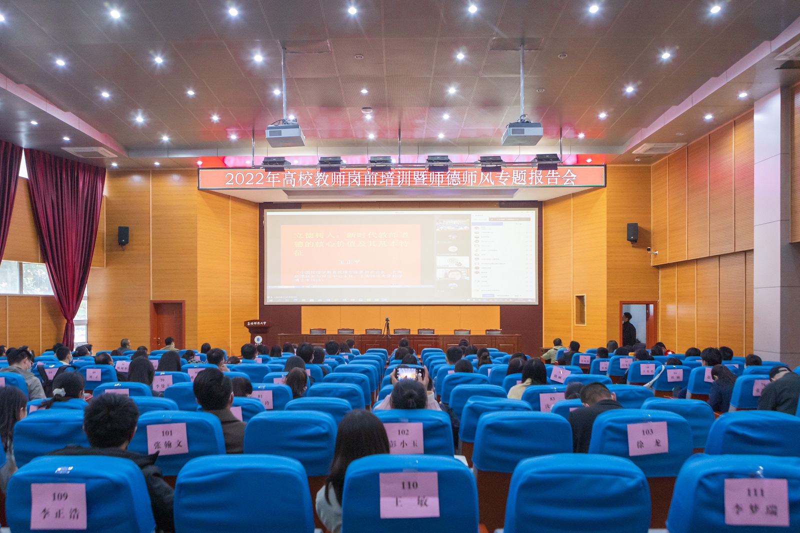 为深入学习贯彻党的二十大精神,持续推进我校师德师风建设,11月9日下午,我校在西湖校区躬行楼F楼报告厅举行2022年高校教师岗前培训暨师德师风专题报告会,各二级党委(党总支)通过腾讯会议同步收看报告会直播。党委教师工作部部长、人事处处长卢少求以及2022年高校教师岗前培训学员参加报告会。报告会由卢少求主持。