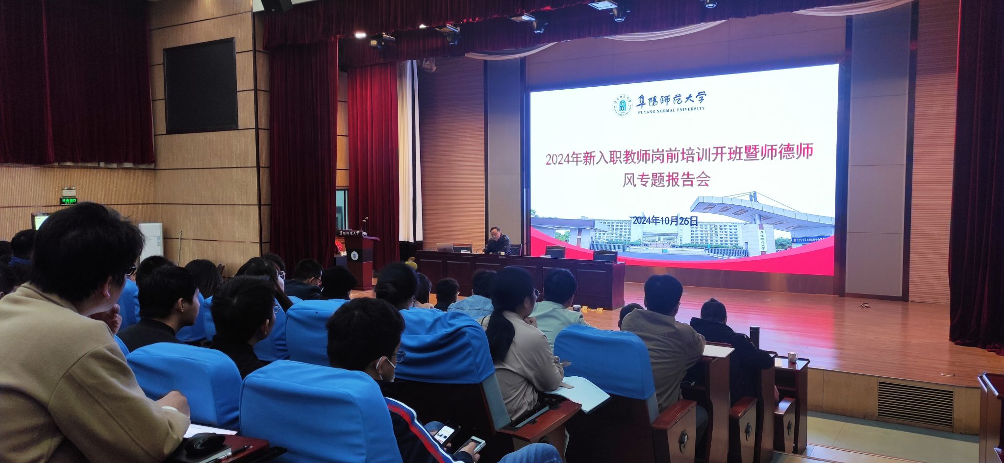 为深入学习贯彻党的二十大和二十届二中、三中全会精神,贯彻落实习近平总书记在全国教育大会上的重要讲话以及关于教师队伍建设的系列重要指示批示精神,提升高校新入职教师师德素养、教学能力和业务水平, 10月26日上午,学校在西湖校区正行楼二楼报告厅举行了2024年新入职教师岗前培训开班暨师德师风专题报告会。纪委办、人事处(党委教师工作部)、教务处(教师教学发展中心)、马克思主义学院等部门负责人和新入职教师参加会议。会议由党委教师工作部副部长陈勇主持。