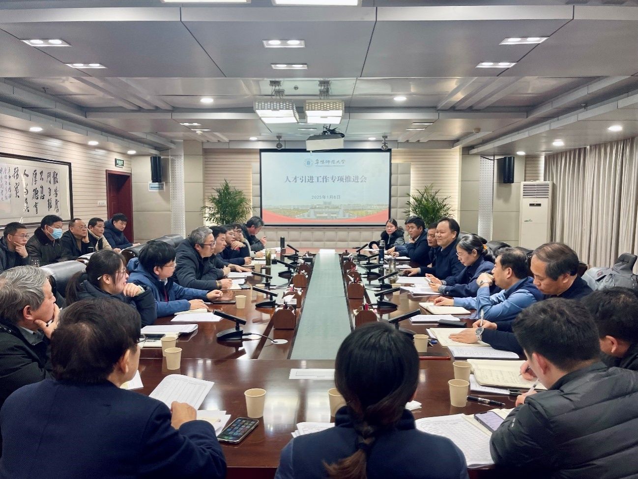 为进一步加强我校高水平人才队伍建设,全面推进2025年度人才引进工作,1月8日上午,我校在西湖校区正行楼1202会议室召开了2025年度高层次人才引进工作专项推进会。校党委副书记、校长方廷勇,校党委常委、副校长黄云志出席会议,人事处和各二级学院党政主要负责人参加会议。会议由黄云志主持。