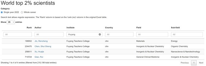 美国斯坦福大学和Elsevier数据库发布了2023年全球前2%顶尖科学家榜单(World's Top 2% Scientists 2023),并于Elsevier旗下Mendeley Data发布(October 2023 data-update for“Updated science-wide author databases of standardized citation indicators”)。我校化学与材料工程学院金仁成、陈水生、徐华杰、乔瑞4位教师入选2023版全球前2%顶尖科学家榜单---“2023年度科学影响力榜单”;同时,金仁成教授再次入选“终身科学影响力榜单”(1960-2023)。榜单以Scopus数据库为依据,统计的论文涵盖SSCI、SCI、EI期刊、EI会议,再基于引用次数、H因子、HM因子等6种指标,从22个领域和176个子领域,近700万名科学家中遴选出世界排名前2%的科学家,旨在提供一个科学家长期科研表现的衡量指标,更客观、更真实地反映科学家的影响力。分为“终身科学影响力榜单”(Career-long impact,关注学者整个学术生涯的综合影响表现)和“年度科学影响力榜单”(Single-year impact,聚焦学者上一年度学术成就)。入选该榜单,意味着我校教师在其研究领域具有较高的世界影响力,其科研成果为该领域发展作出了较大贡献,获得世界学术界的极大关注,充分体现了我校学科建设成效和科研工作实力,也为进一步提升学校在全球的影响力发挥了积极的作用。