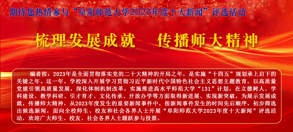 国家通用语言文字推广普及工作表彰大会暨2023年国家语委全体委员会议在京召开。我校文学院王琴教授荣获“国家通用语言文字推广普及先进个人”称号,这是国家通用语言文字法颁布实施22年来的首次表彰。学校历来重视国家通用语言文字推广普及工作,在新生普通话大赛、普通话水平测试、经典润乡土活动等方面取得了骄人成绩。特别是文学院语言学教学团队,带领高校青年志愿者团队始终坚持“推普助力脱贫攻坚”“推普助力乡村振兴”,为皖北地区国家通用语言文字的推广做出突出贡献。