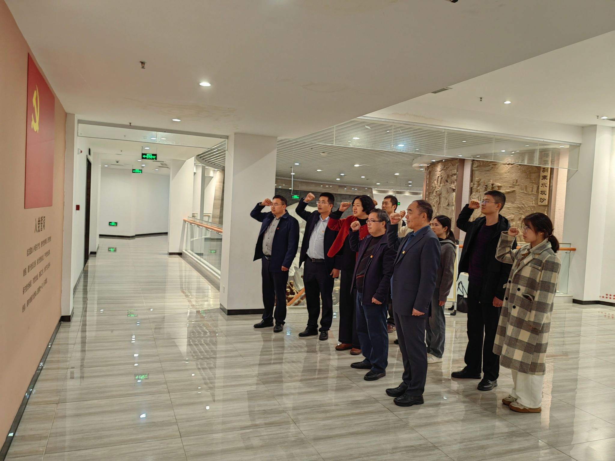 活动最后,全体党员在纪念馆二楼展厅庄严肃立,面向党旗举起右拳,重温入党誓词。铿锵有力的誓言回荡在展厅内,既是对入党初心的回溯,也是对“传承抗洪精神 践行初心使命”的庄严承诺。