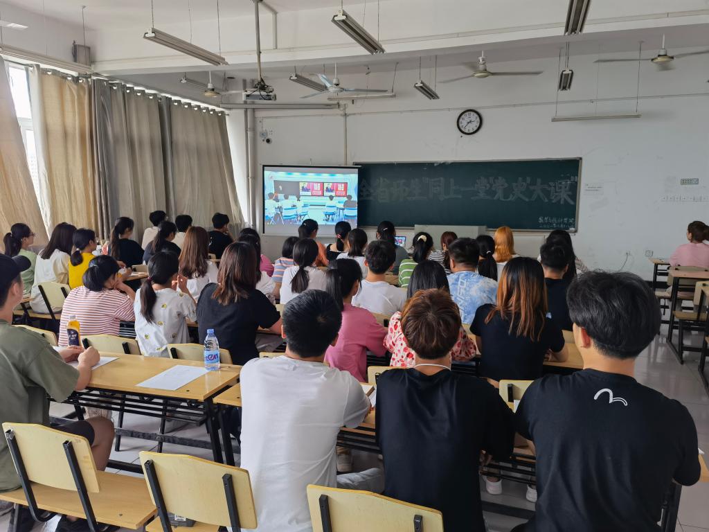 为深入贯彻落实习近平总书记关于深化思想政治理论课改革创新和“大思政课”的重要指示批示精神,全面落实习近平总书记在党史学习教育动员大会上的重要讲话精神,省教工委举办全省师生“同上一堂‘党史’大课”活动。6月18日下午,数学与统计学院组织师生与全省师生一道“同上一堂‘党史’大课”。