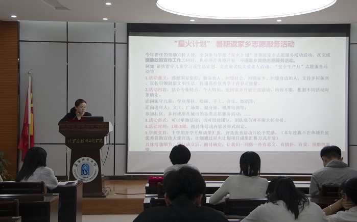 评选环节后,学校举行了2022年度学生资助宣传大使聘任仪式,各学院学生资助工作负责人分别为学生资助宣传大使颁发了聘书。学生工作处李山衫老师围绕宣传大使角色定位、工作任务、学生资助政策宣讲作了专题培训。