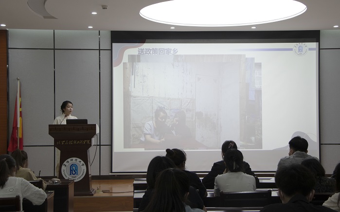 在各学院初评推荐的基础上,个人组9名学生及团队组3个团队以PPT演示的方式,向与会同志分享了2021年度资助宣传工作中的感人故事和心得体会,他们或在校期间助力疫情防控、参与爱心献血,或寒暑假期间回到中学母校、家乡乡村或所在社区,开展资助政策宣传、辅导留守儿童、陪伴空巢老人,用实际运动诠释了学生资助宣传大使的初心使命,展现了青年一代的责任担当,传播了我校优秀学子的青春正能量。
