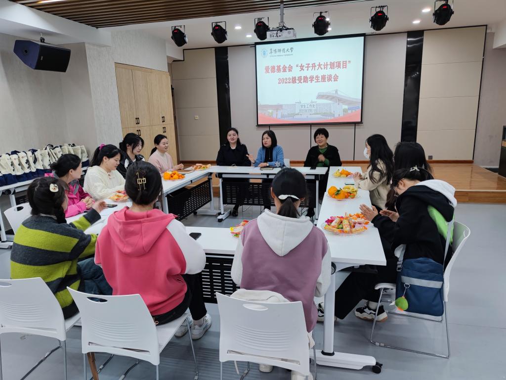 3月7日晚,学生工作处在西湖校区正行楼602活动室组织召开爱德基金会“女子升大计划”项目2022级受助学生代表座谈会。受助学生代表、二级学院学生工作负责人和辅导员代表及学生工作处有关工作人员参加了座谈。座谈会由学生工作处副处长吴雪影主持。