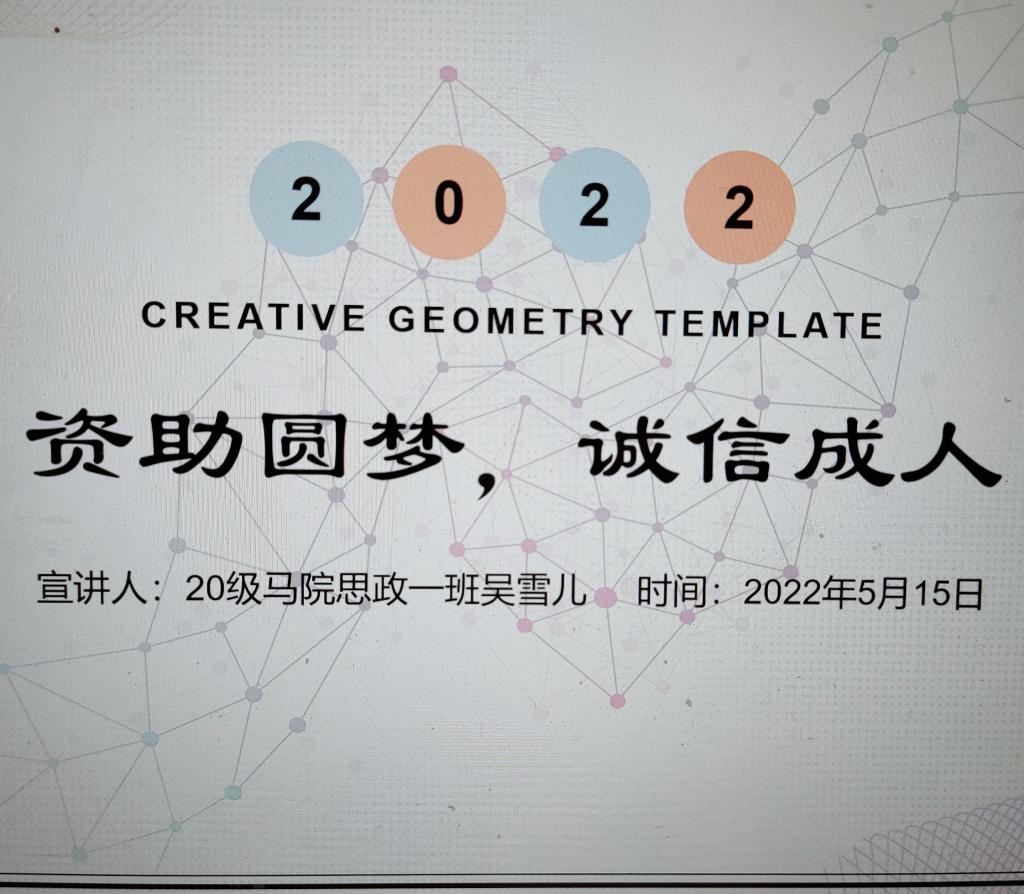 2022年5月15日,为了让同学们充分了解国家的资助政策,通过腾讯会议向本院21级的同学们详细介绍了“绿色通道”、“家庭经济困难学生认定”、“国家助学金”、“国家励志奖学金”、“国家奖学金”、“勤工助学”等内容。同时,结合自己的大学经验与感悟,帮助学弟学妹们知道更多有关资助金的获取途径以及奖学金的评定形式,与他们进行交流。最后,提醒同学们要警惕诈骗,提升防诈骗意识和能力。